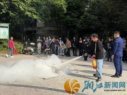 湘江新闻网4月24日讯(通讯员 李慧玲)为加强社区消防安全教育,提升居民自防自救能力,营造安全社区环境,4月23日下午3点,望城坡街道箭弓山社区联合湖南省消防救援总队,在麓山枫情小区7栋前坪开展消防安全知识宣传活动,以理论讲解、互动体验、实操演练结合,为居民上消防安全课。