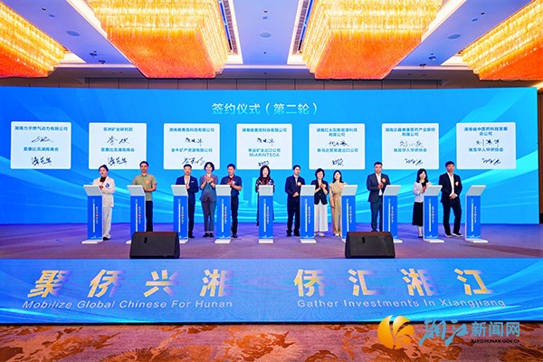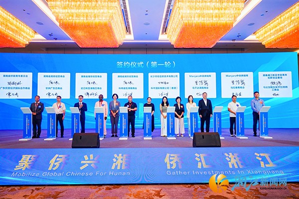 湖南省侨联青年委员会与广东民营经济国际合作商会签署合作协议,双方将在青年创新创业、海外市场拓展等方面深化合作。广东民营经济国际合作商会副会长霍江涛说:“两次来访湘江新区,我们深入了解了这里的产业优势与创新活力。此次与湖南省侨青委合作,将共同推动青年人才与湘企走向非洲,实现共赢发展。”