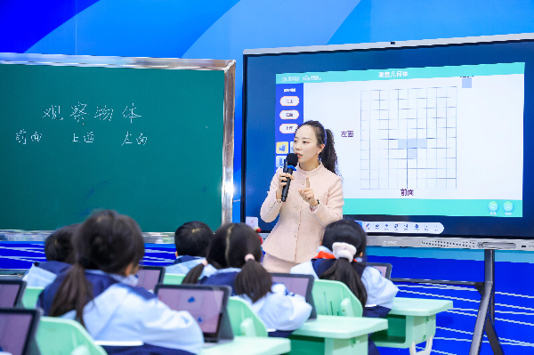岳麓区实验小学周燕萍老师巧妙借智慧课堂将抽象的空间关系可视化,助力学生空间观念发展。